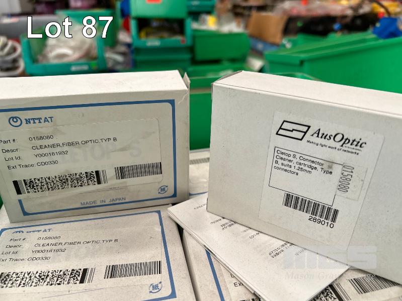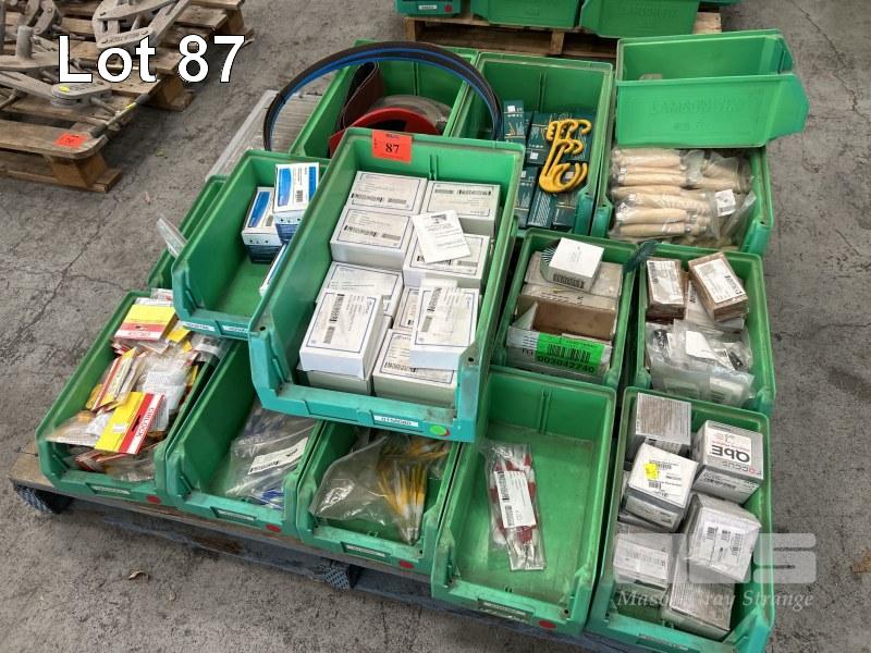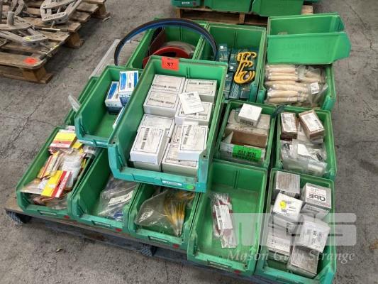 FIBRE OPTIC CLEANERS & TOOLS, WIRE STRIPPER DISCS, ELECT INSULATOR COMPOUND, SANDING BELTS, FASTENERS, ETC IN 16 x PARTS DRAWERS 1 x PALLET