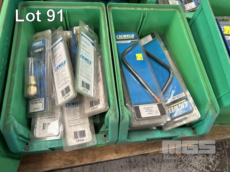 OXY/ACETYLENE WELDING EQUIPMENT & CONSUMABLES INCLUDING CIGWELD TIPS, TORCH COMPONENTS, FITTINGS, CUTTING TIPS, TIP CLEANERS, PLATE MATE CUTTER, SILVER BRAZE RODS, ETC 1 x PALLET