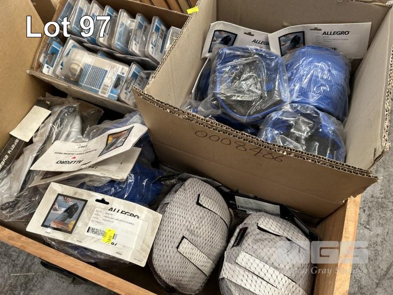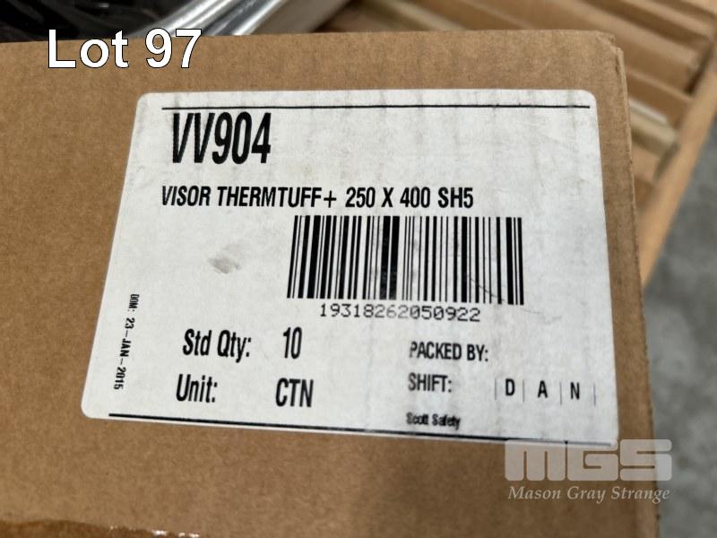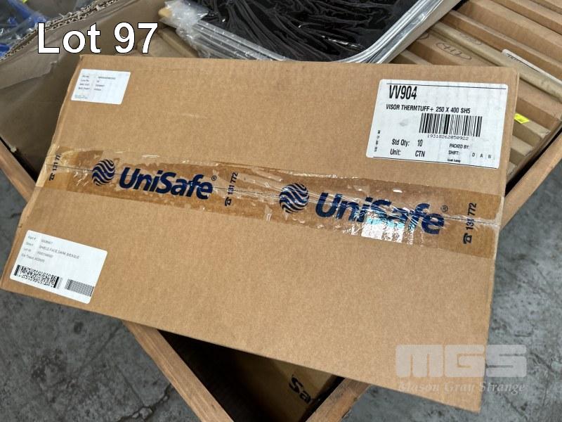 200 (APPROX) x FACE SHIELD VISORS, UNISAFE, THERM TUFF, 250 x 400SNS, 12 x KNEE PADS, ALLEGRO, RUBBER & LEATHER, LEATHER HOODS & CAPS, ETC 1 x PALLET