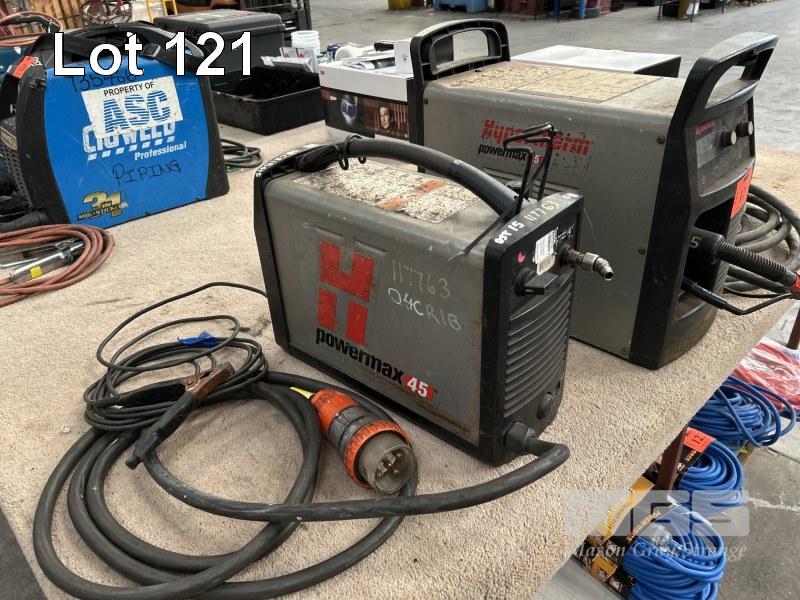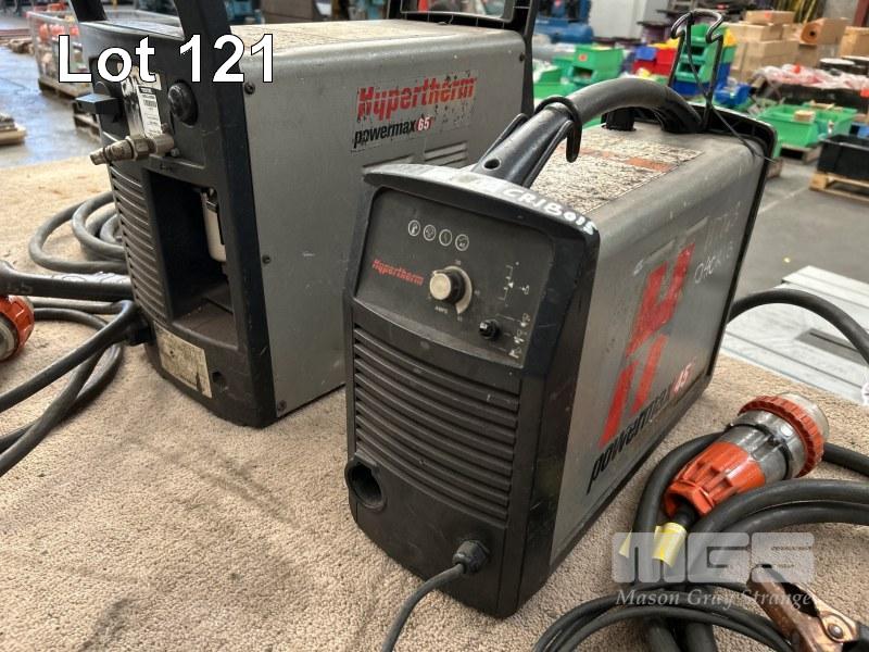 2 x PLASMA CUTTERS, HYPERTHERM, POWERMAX 65 & 45 WITH CABLES & HAND PIECE, 415V