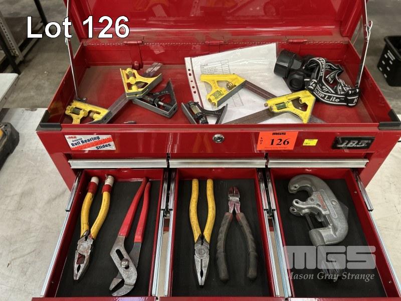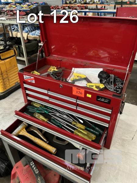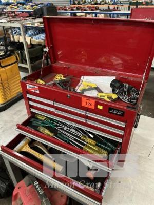 TOOL CHEST, JBS, 6 DRAWER 680 x 300 x 250mm WITH ASSORTED HAND TOOLS INCLUDING HAMMERS, PLIERS, CUTTERS, DRIVERS, ETC