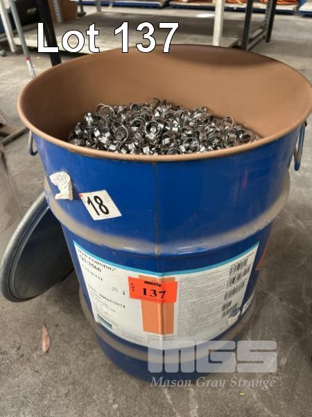 HUGE QUANTITY HOSE CLAMPS, GEMI 12 TO 20mm DIAMETER 1 x 100 LITRE DRUM, 3/4 FULL NEW