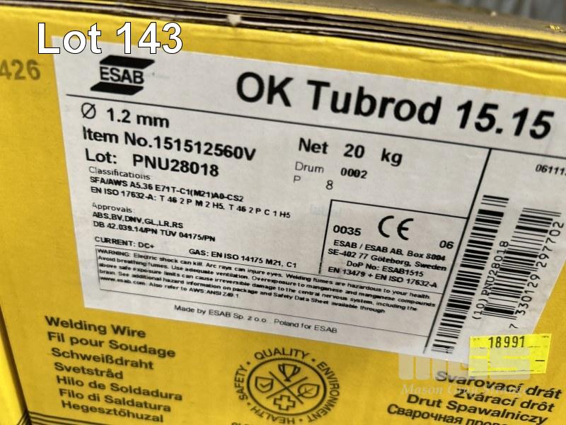 5 x BOXES MIG WELDING WIRE, ESAB OK TUBROD 15.15 1.2mm, 20kg BOXES, (4 x SPOOLS/BOX)
