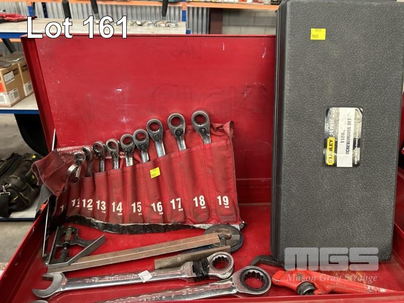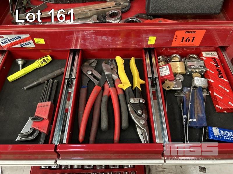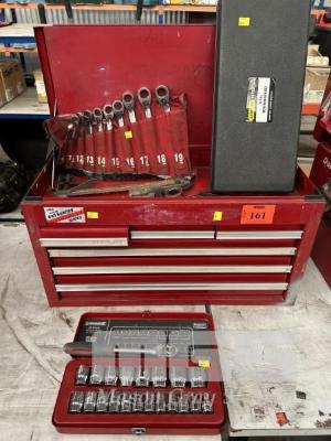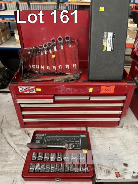 TOOL CHEST, JBS, 6 DRAWER, 680 x 300 x 250mm WITH ASSORTED TOOLS INCLUDING SOCKET SET, SIDCHROME 20 PIECE METRIC, 1/2" DRIVE, 8-21mm, GEAR SPANNER SET, JBS, 10 PIECE, 10-19mm, SCREW DRIVER SET, PLIERS, CUTTERS, ETC