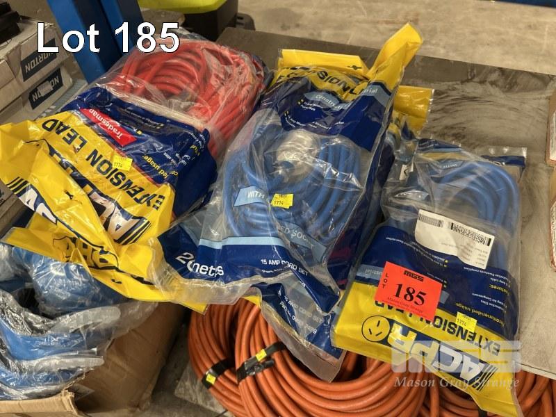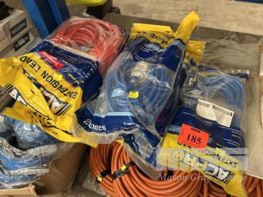 5 x ELECTRICAL EXTENSION CORDS, ACPR 240V, 15 AMP 1 @ 10m, 2 @ 20m & 10 AMP, 2 @ 30m NEW