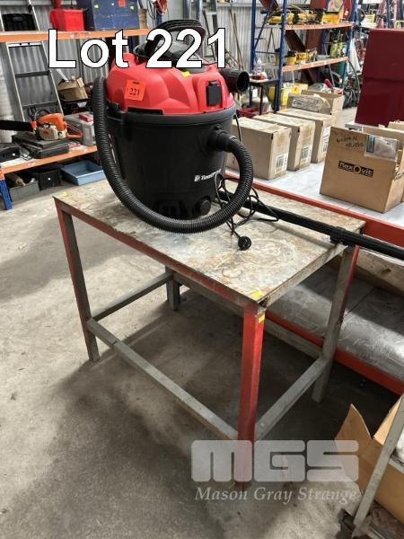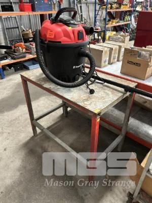 WET & DRY VAC, TOOL PRO MOD: PLV541405 WITH ATTACHMENTS, 240V & STEEL WORK BENCH,1000 x 600 x 900mm (H), PLATE TOP