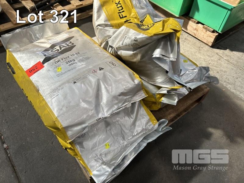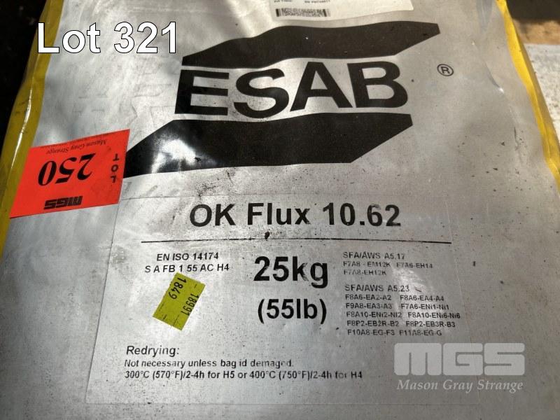 WELDING FLUX GRANULES, ESAB, OK FLUX 10.62 4 x 25kg BAGS (NOTE: 2 x BAGS HAVE LEAKS)