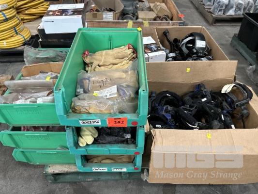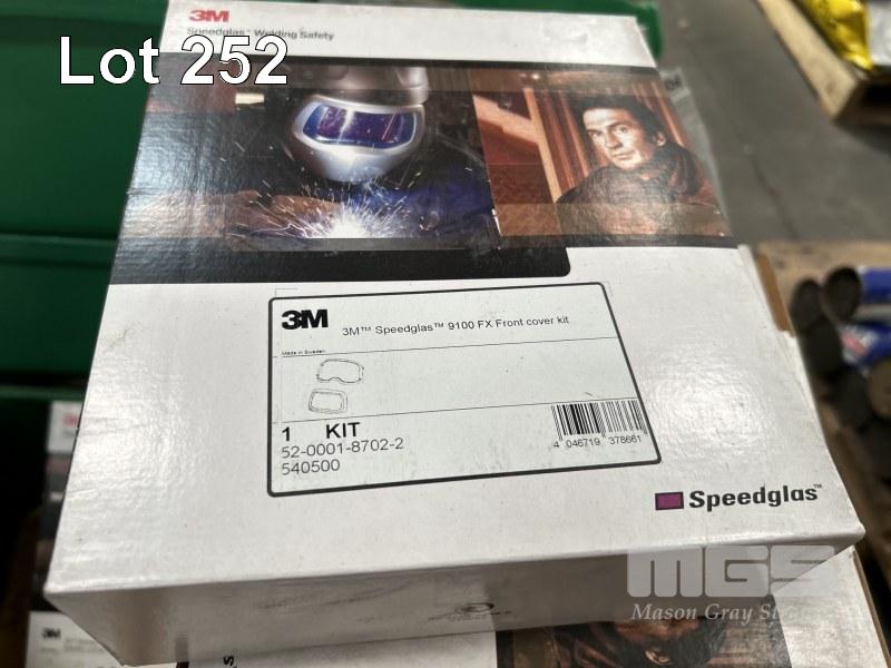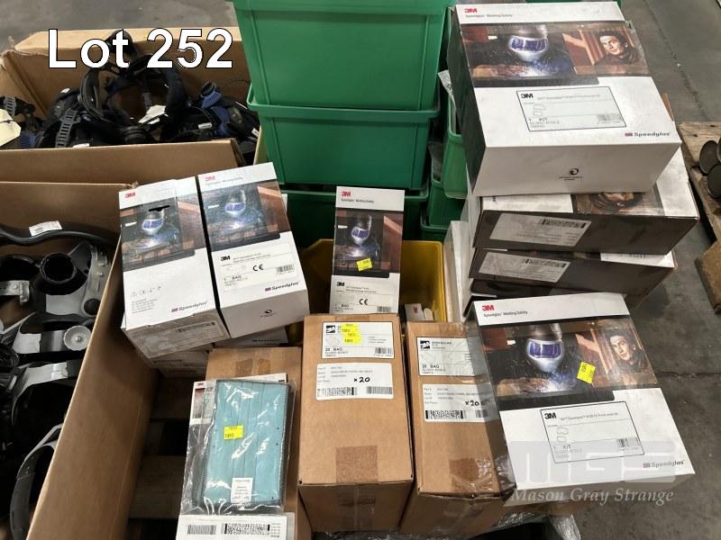 WELDING HELMET PARTS, 3M SPEEDGLAS INCLUDING COVERS, HARNESSES, AIR DUCTS, HEAD BAND, FX COVER KITS, WITH PART DRAWERS & CONTENTS GLOVES, CAPS, ETC 1 x PALLET