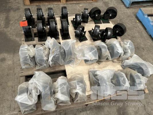 16 x STEEL SWIVEL CASTOR WHEELS, BLACK, 150mm (D), HEAVY DUTY & 16 x FIXED CASTOR WHEELS, BLACK, 150mm (D), HEAVY DUTY