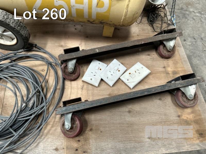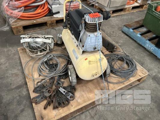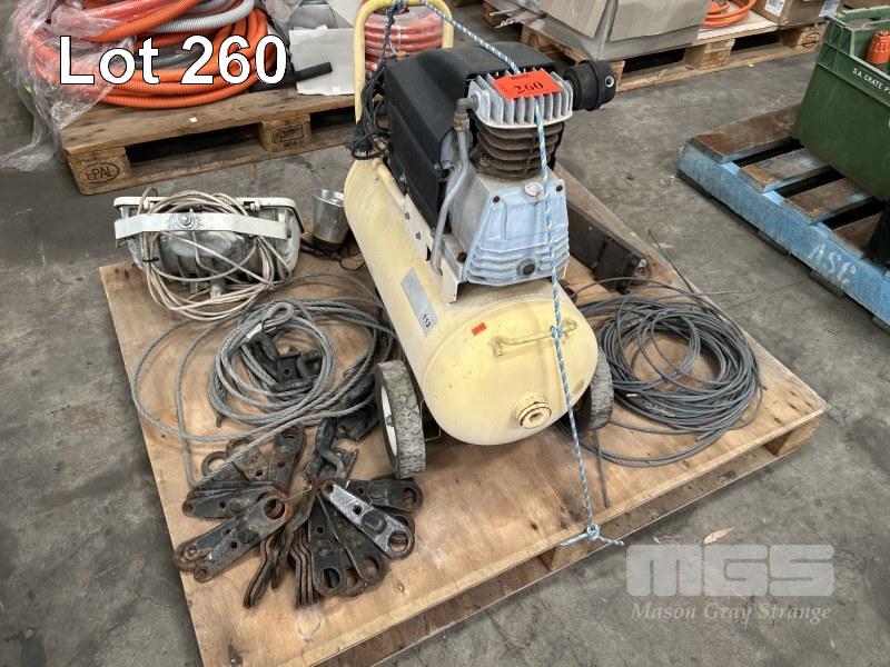 AIR COMPRESSOR, 2.5 HP, 240V, FLOODLIGHT, DOLLIES, STEEL WIRE ROPE, ANCHOR POINTS, ETC 1 x PALLET