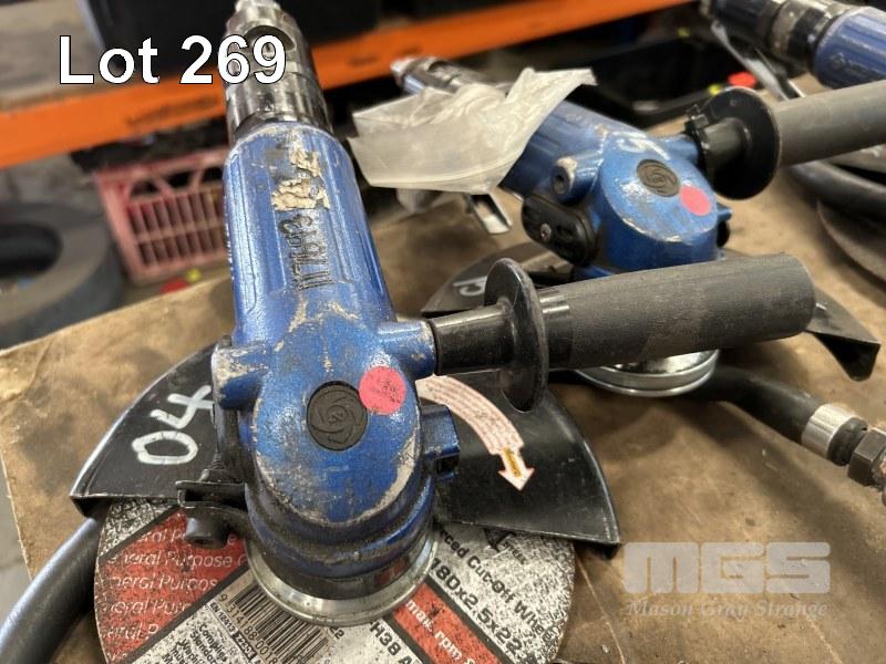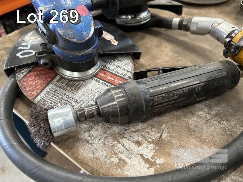 3 x PNEUMATIC GRINDER/CUTTERS, NITTO MYTON MOD: MLC-70 180mm & 125mm WITH DIE GRINDER, ATLAS COPCO