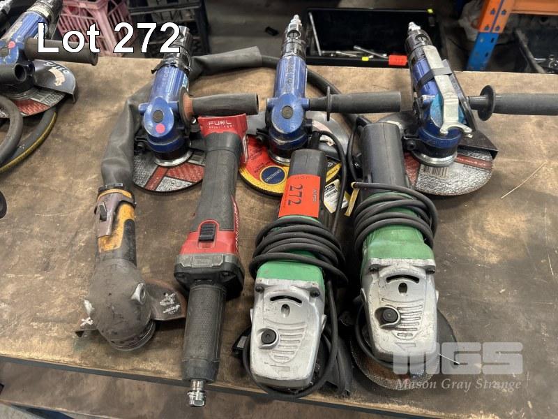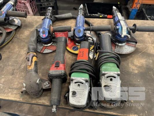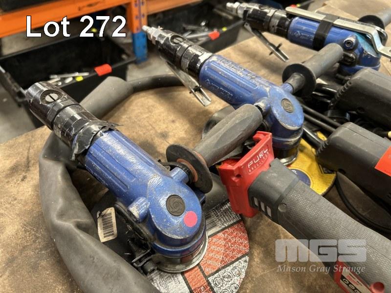 3 x PNEUMATIC GRINDER/CUTTERS, NITTO MYTON MOD: MLC-70, 2 x ANGLE GRINDERS, HITACHI 125mm & MILWAUKEE DIE GRINDER, 125Mm NO BATTERY OR CHARGER
