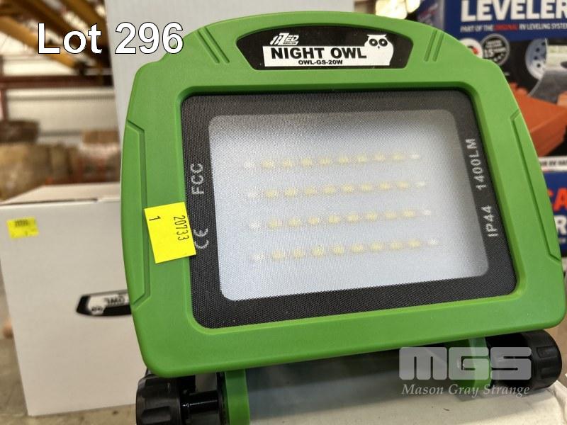 6 x LED FLOODLIGHTS, RECHARGABLE, NIGH OWL 1400LM & LEVELLER TOPS, LYNX CAP 4 x BOXES (4/BOX) AS NEW