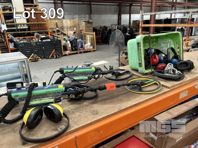 2 x METAL DETECTORS, MINE LAB MOD: EXCALIBUR II ALL FAULTS WITH SPARE COIL & HEAD SETS