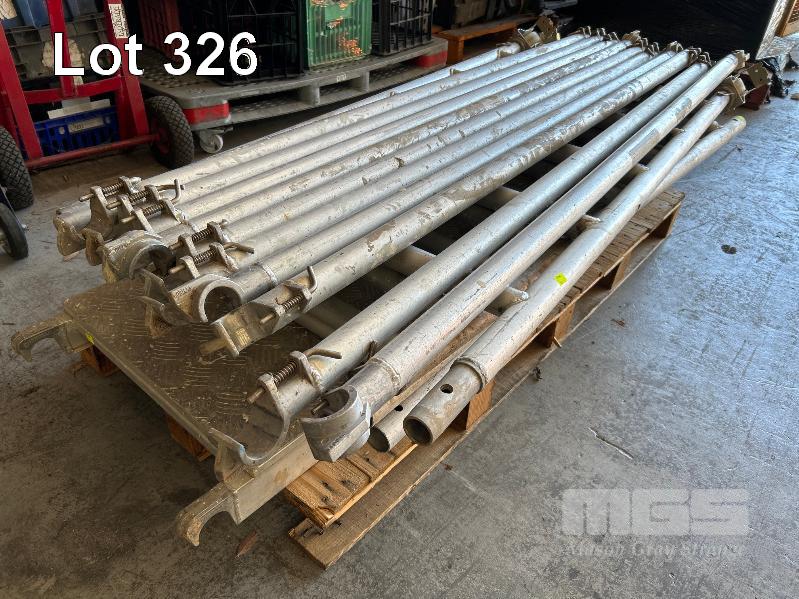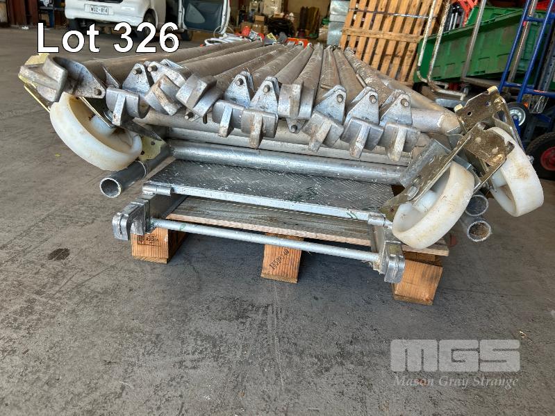 ALLOY SCAFFOLDING, MOBILE COMPRISING 4 x UPRIGHTS, 1600 ( H) x 720mm (W) 1 x PLATFORM, 1900 x 400mm 8 x CROSSBEAMS, 1800mm 2 x CROSS BEAMS, 2000mm 4 x CASTOR WHEELS