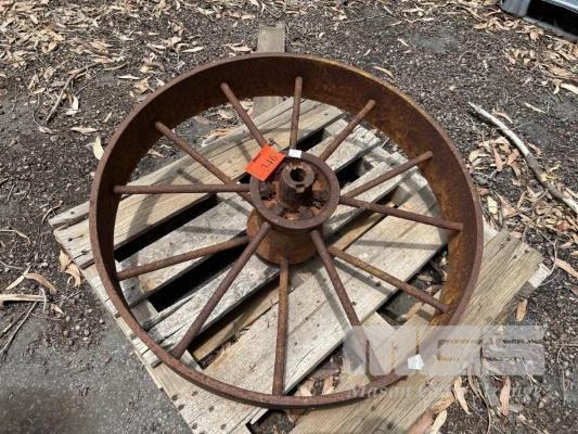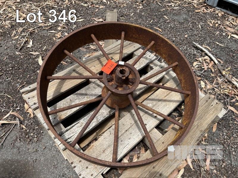 VINTAGE SPOKED STEEL WAGON WHEEL, 730mm DIAMETER
