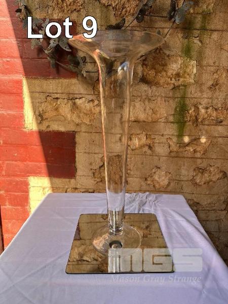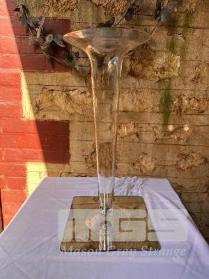 2 x CLEAR GLASS TRUMPET VASES, 60 (H) x 25cm (W)
