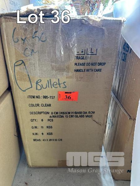 6 x CLEAR GLASS BULLET SHAPE, 50cm (H)