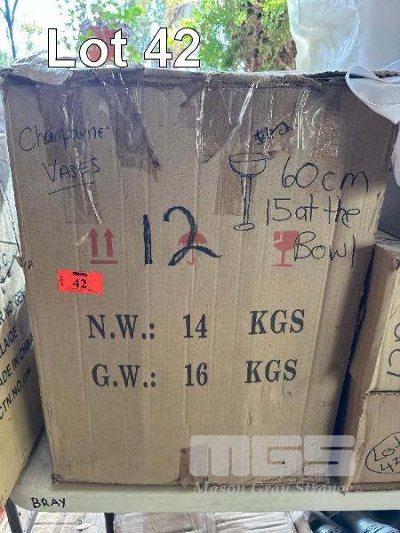 12 x CLEAR GLASS LONG STEM WITH BOWL TOP, 60 (H) x 15cm (W) AT BOWL