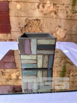 5 x CUBE VASES, BLOCK PATTERN, 15 x 15cm