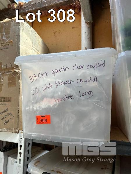 33 x CLEAR PLASTIC CRYSTAL DROP GARLANDS & 20 x WHITE FLOWER & LEAF GARLANDS, 1m
