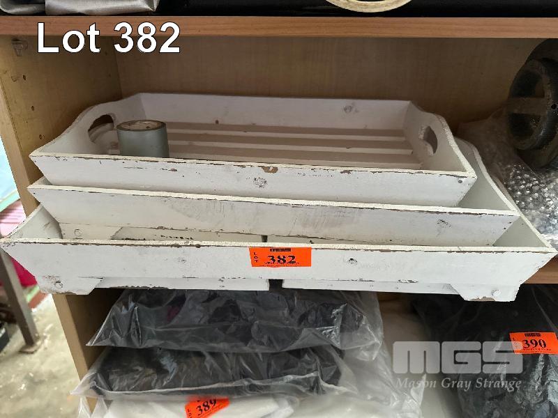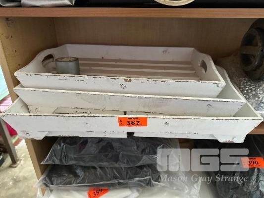 WHITE WOOD TRAYS WITH FOLDING LEGS, 60, 50 & 40cm