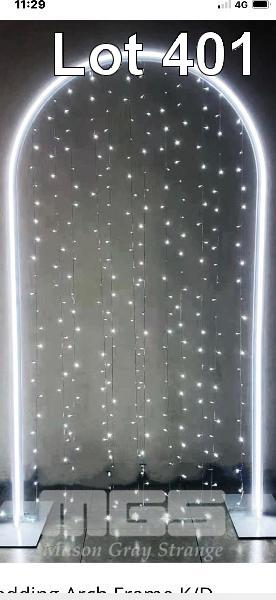 LED LIGHT ARCH WITH METAL FRAME, 140 (W) x 260cm (H), NEW (HANGING LIGHTS DISPLAYED IN PHOTO NOT INCLUDED)