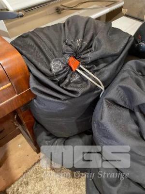 200 (APPROX) x BLACK LYCRA CHAIR COVERS, (USED ONCE)