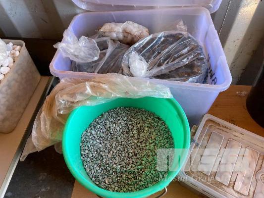 LARGE QUANTITY ACRYLIC POLISHED BLACK & WHITE STONES & NATURAL SILVER
