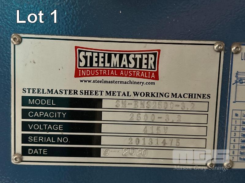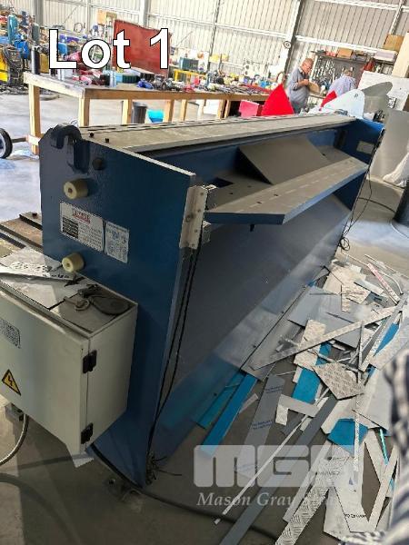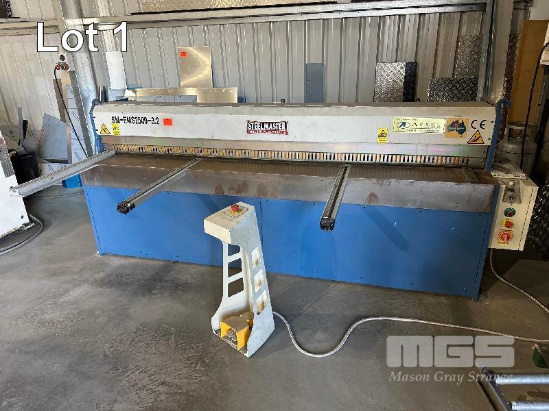 GUILLOTINE, STEELMASTER MOD: SM-EM52500-3.2 2500 x 3.2mm CAP WITH BACKSTOP 2020 415V PLUG IN PEDESTAL FOOT CONTOL WTH FOOT OP