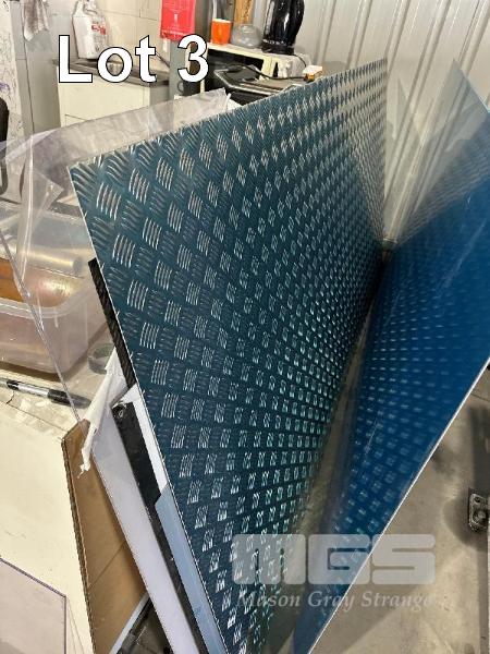 ASSORTED FULL SHEETS ALLOY, CHECKER 1.6, 2400 x 1200mm & ACRYLIC OFFCUT
