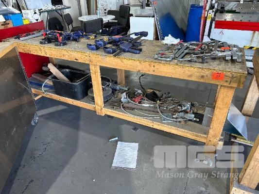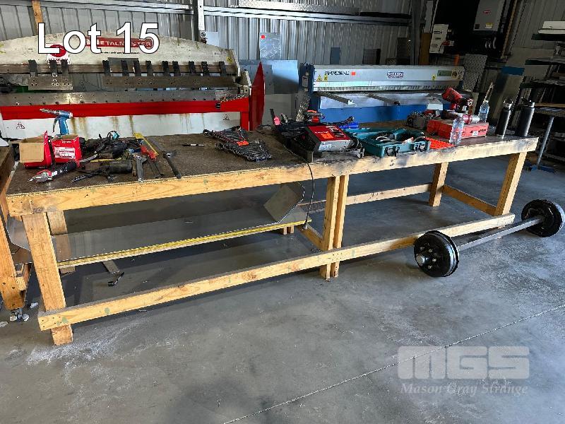 2 x TIMBER WORK BENCHES, 3600mm & 2400mm, MOBILE