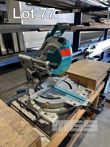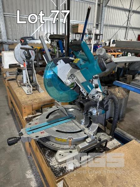 COMPOUND MITRE SAW, MAKITA MOD: LS1019 SWIVEL BASE, MITRE CUT, BENCH & ALLOY SAW BLADE