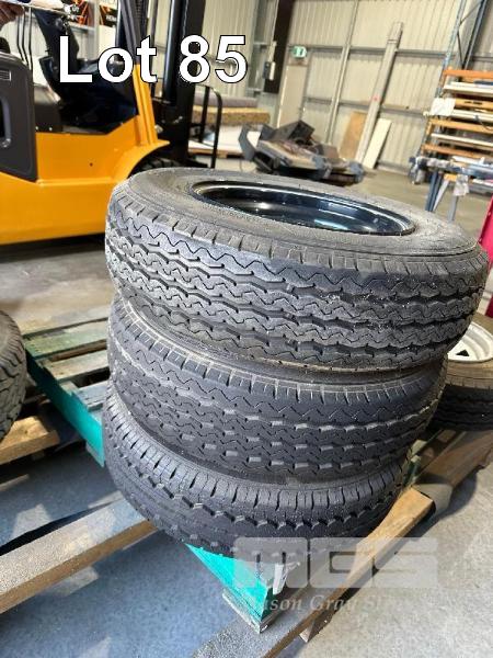 3 x STEEL RIMS & TYRES WITH 185/14LT TYRES