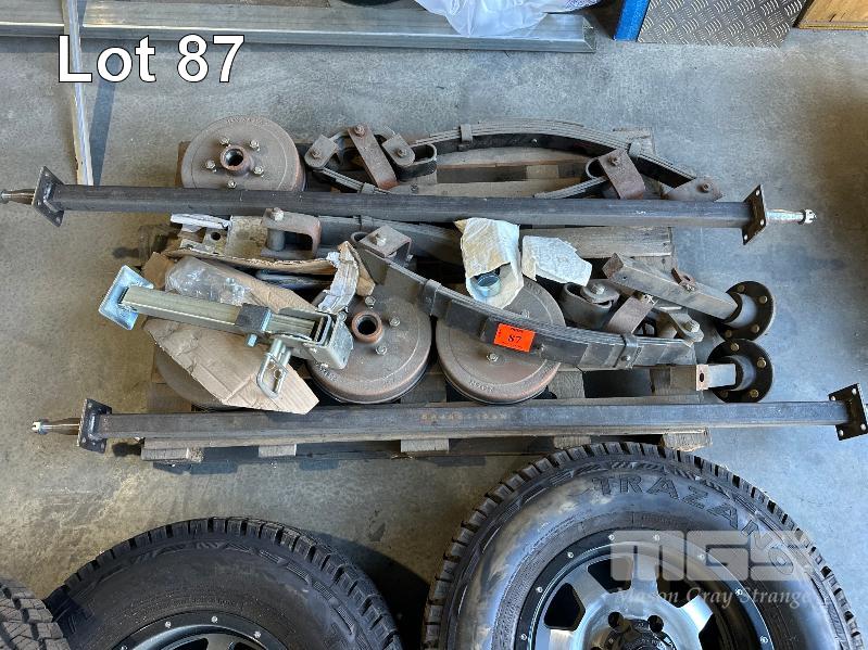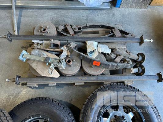 TANDEM AXLE TRAILER SET INCLUDING AXLES DRUMS, HUBS, SPRINGS, ETC