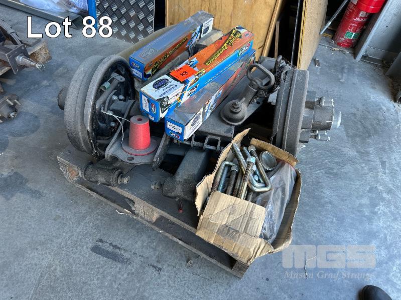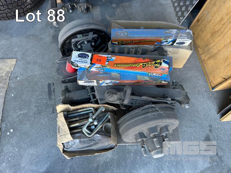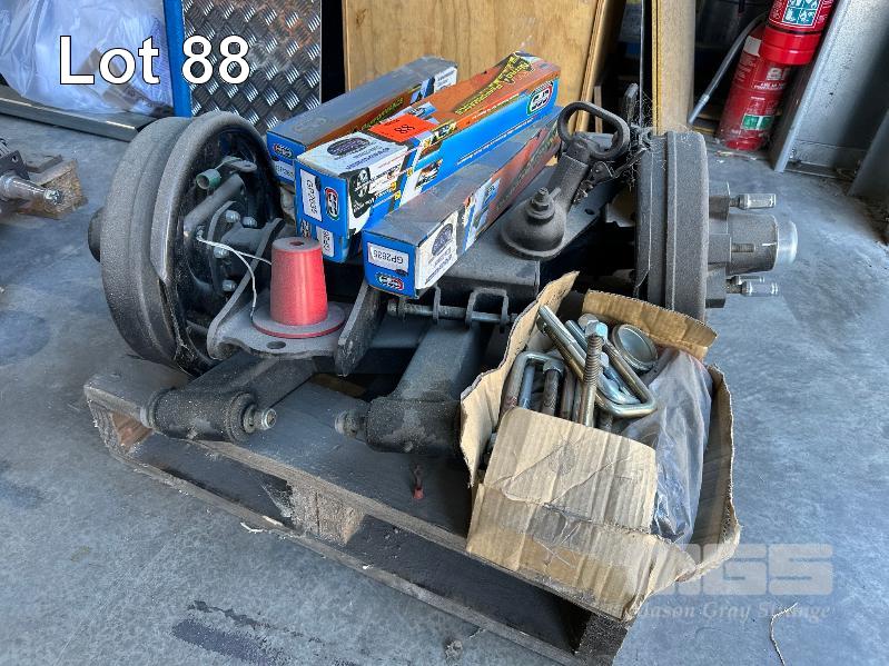 HEAVY DUTY TRUCK AXLE SET INCLUDING INDEPENDANT ARMS, HUBS, DRUMS, ETC
