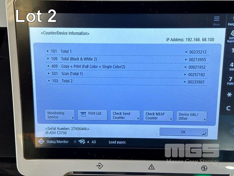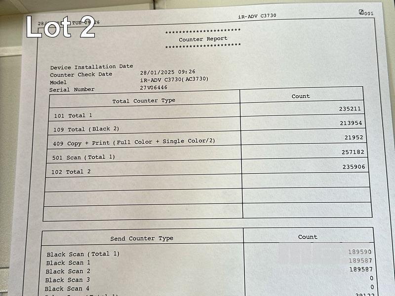 PHOTOCOPIER, CANON imageRUNNER ADVANCE DX C3730i COLOUR DIGITAL, ADF, PRINTER USB & NETWORK PORTS, 21,952 COLOUR & 213,955 B&W COPIES SHOWING (TEST PAGE ATTACHED) S/N:27V06446