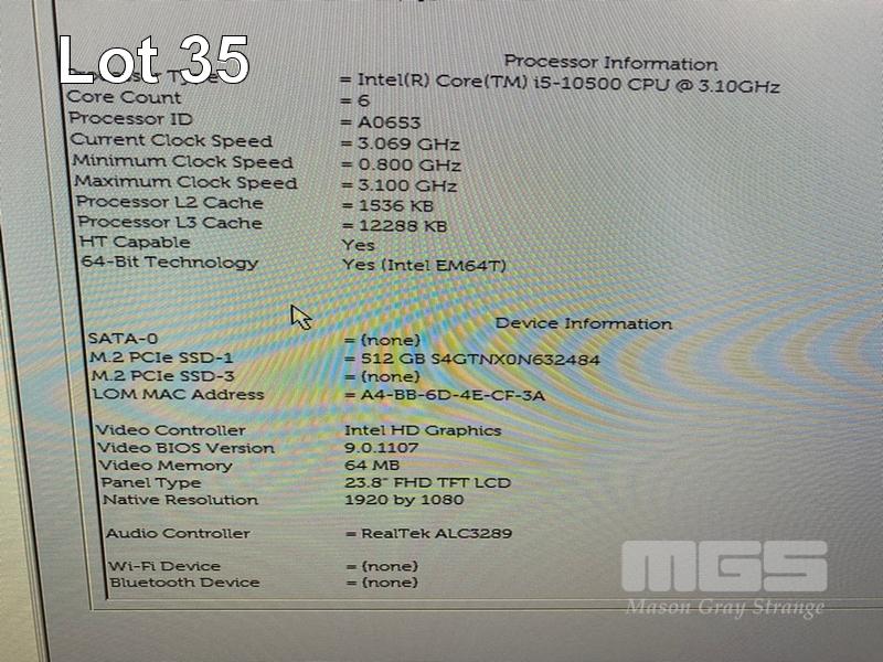 ALL-IN-ONE PC, DELL OPTIPLEX 7480, CORE i5 10500 (10TH GEN) @ 3.1GHz, 8GB DDR4 RAM, 512GB NVMe M.2 SSD, INBUILT 23.8" FHD WIDESCREEN (1920x1080), INTEL HD VIDEO, WEBCAM, 5 x USB, 1 x USB-C, WINDOWS 11 HOME INSTALLED, KEYBOARD & MOUSE S/N:HXTHX53