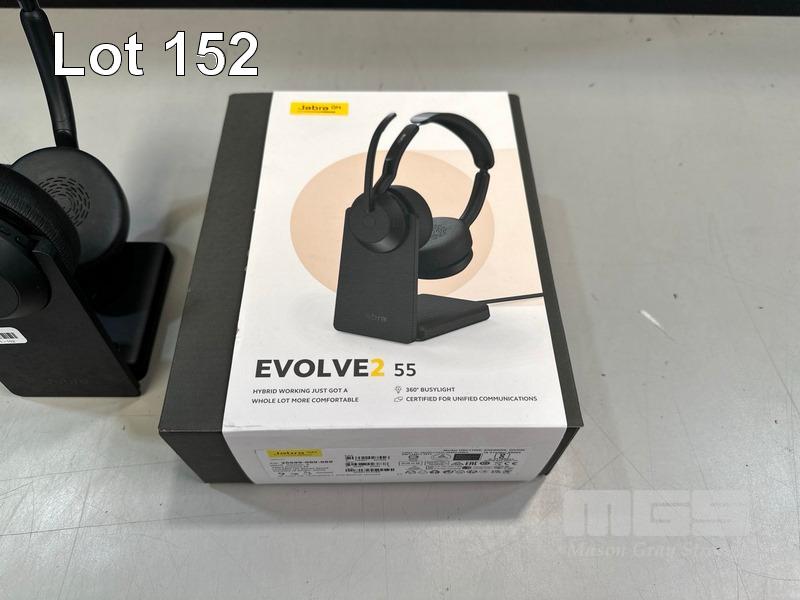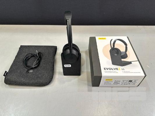2 x JABRA EVOLVE 2 55 WIRELESS HEADSETS, HSC170W WITH CABLES & BLUETOOTH RECEIVERS