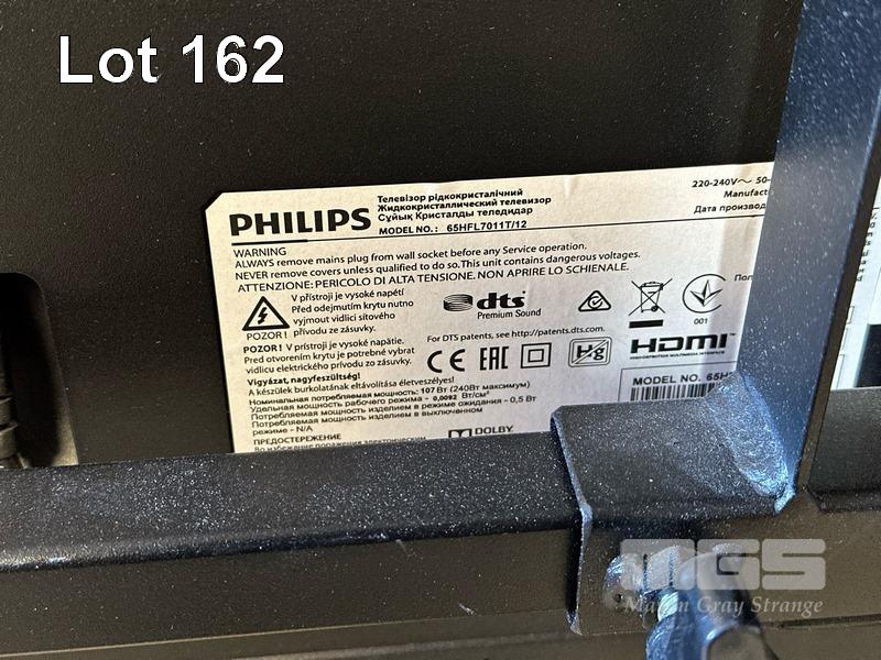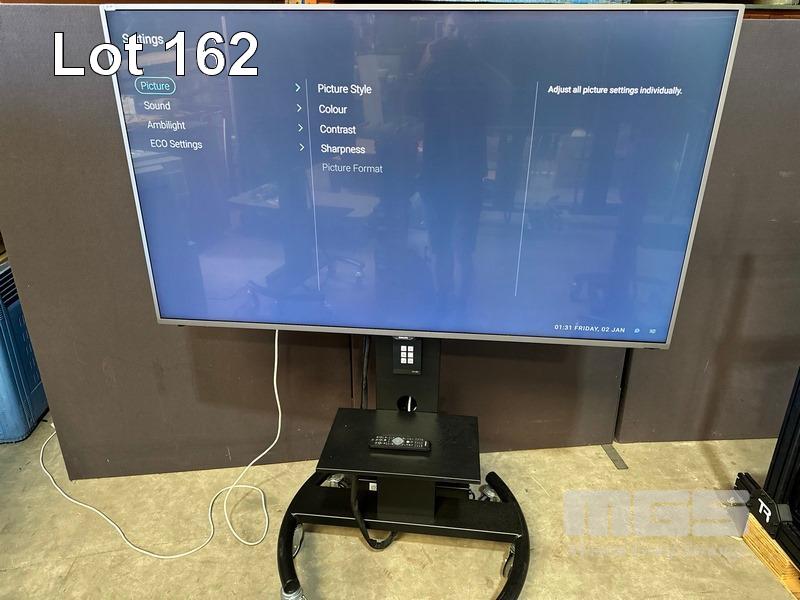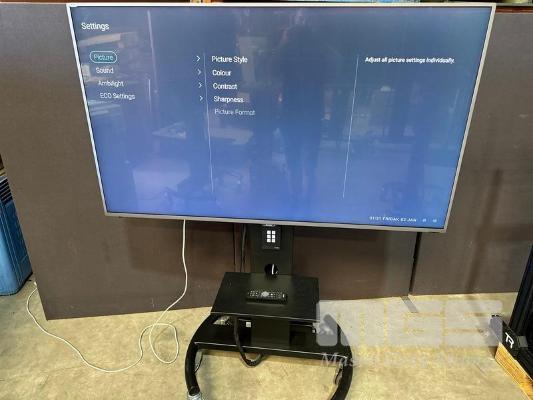PHILIPS 65" COMMERCIAL 4K ULTRA HD LED DISPLAY, 65HFL7011T/12 & REMOTE WITH AMX PANEL, POWER BOARD & 5-PORT NETWORK SWITCH ON AMM MOBILE STAND S/N:FZ1A1727017836