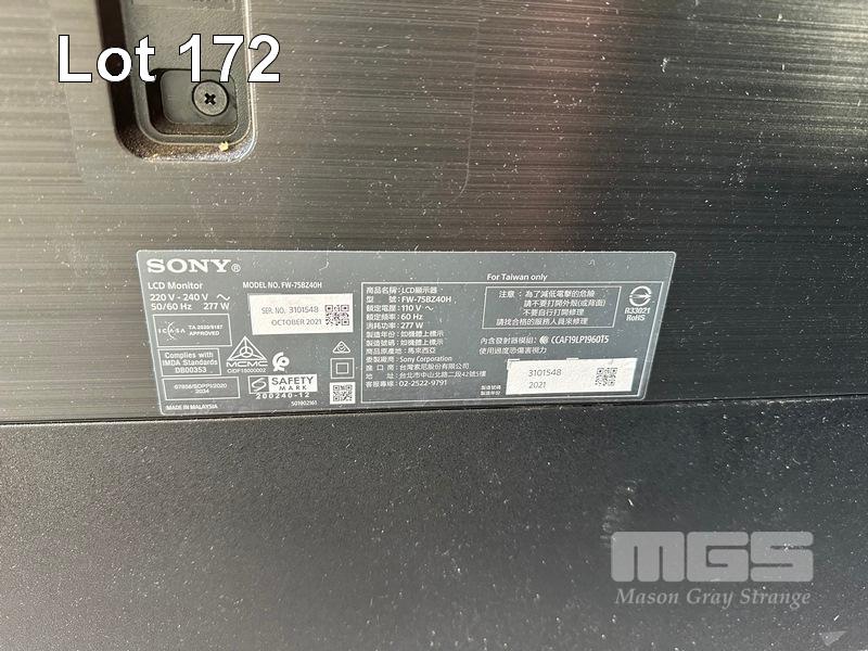 SONY BRAVIA FW-75BZ40H 75" 4K PROFESSIONAL DISPLAY WITH REMOTE & WALL MOUNT BRACKET (NO STAND) S/N:3101548