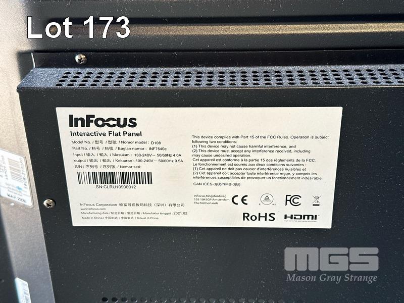 INFOCUS JTOUCH 75" 4K INTERACTIVE DISPLAY, INF7540e WITH PENS & WALL MOUNT BRACKET (NO REMOTE, NO STAND) S/N:CLRU10900012