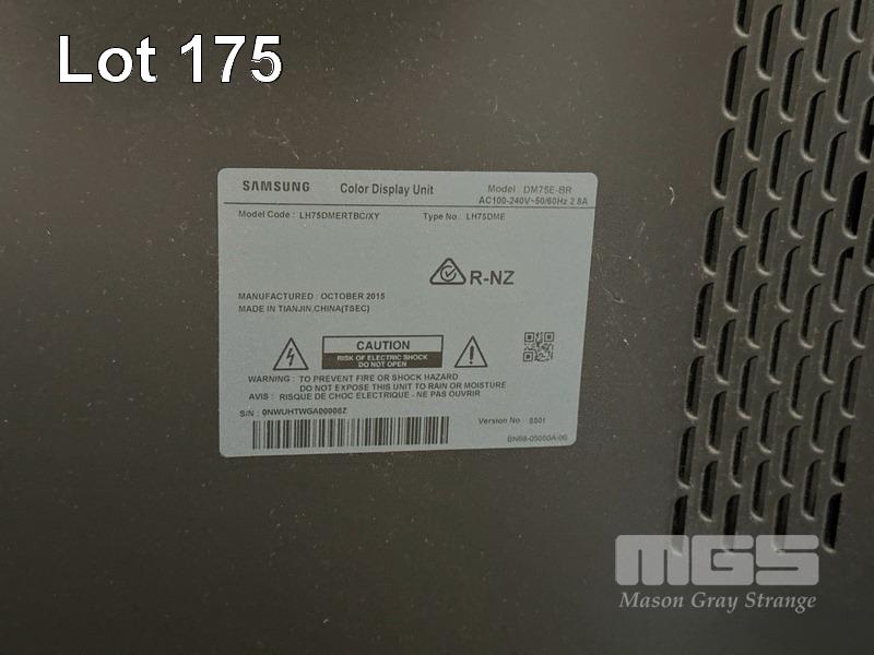MONITOR, SAMSUNG DM75E-BR 75" e-BOARD TOUCHSCREEN LCD DISPLAY, MODEL LH75DMERTBC/XY (NO REMOTE, NO STAND) (NOTE: SCRATCH ON SCREEN)