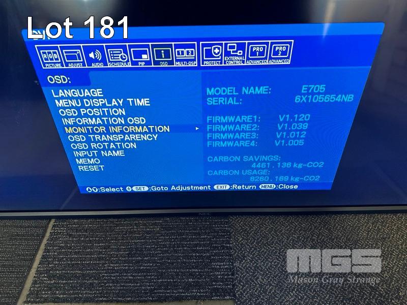 MONITOR, NEC MULTISYNC E705 70" COMMERCIAL LCD DISPLAY (NO REMOTE, NO STAND) (NOTE: SCRATCH ON SCREEN) S/N:6X105654NB