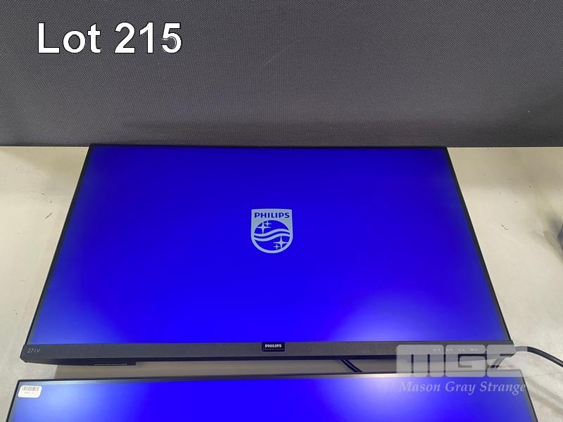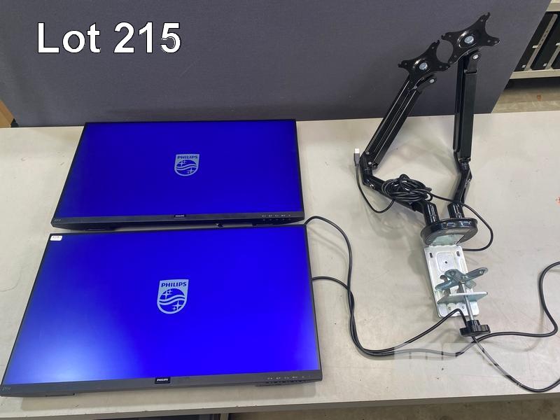 2 x MONITORS, PHILIPS 271V8/75 27" IPS WIDESCREEN, HDMI, VGA (WITH CABLES) WITH DUAL DESK MOUNT STAND S/N:UK02120007534, UK02120007526