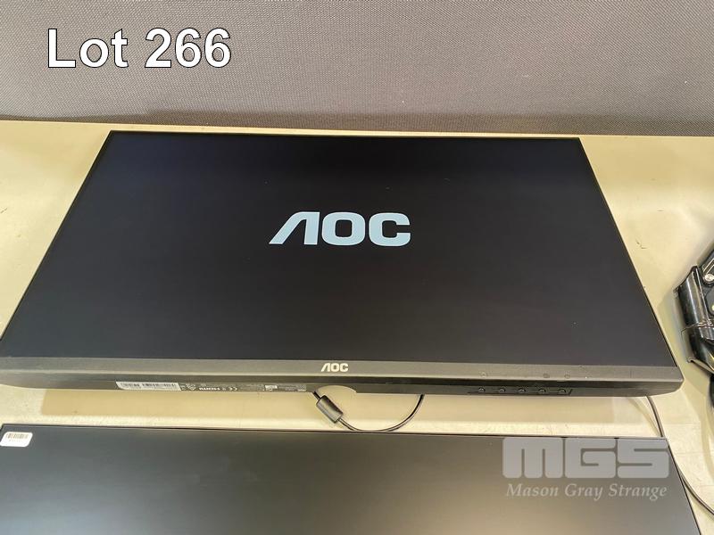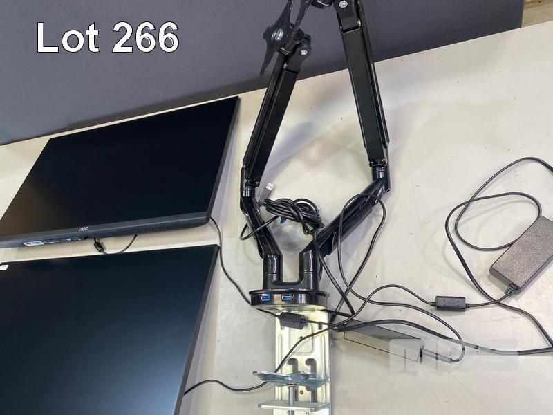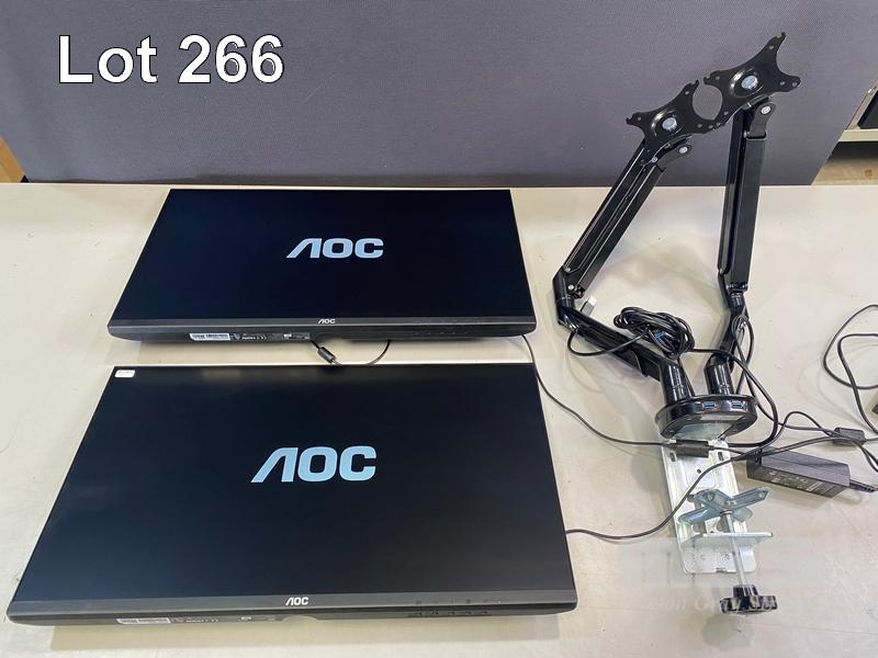 2 x MONITORS, AOC 27B2H/75 27" IPS WIDESCREEN, HDMI, VGA (WITH CABLES) WITH DUAL DESK MOUNT STAND S/N:SBNN8HA050407, SBNN8HA050399