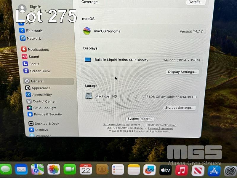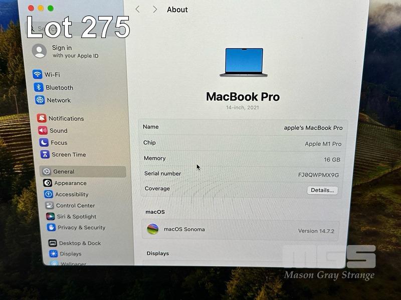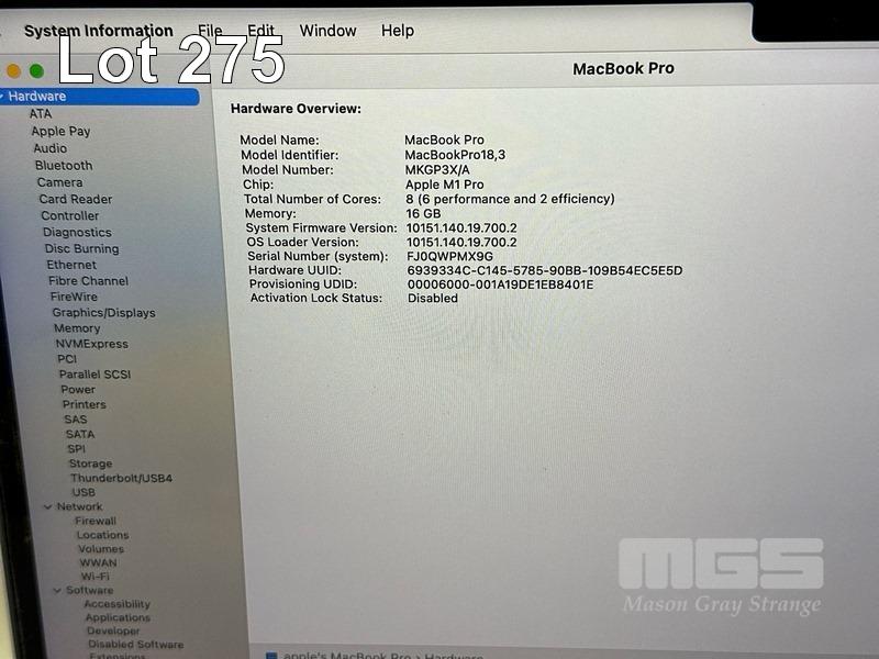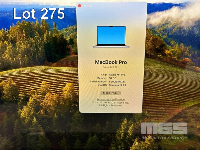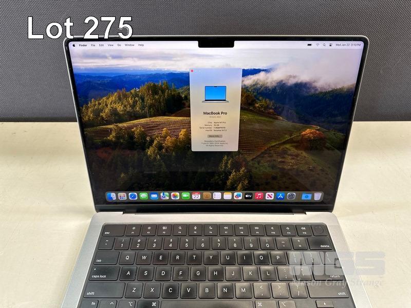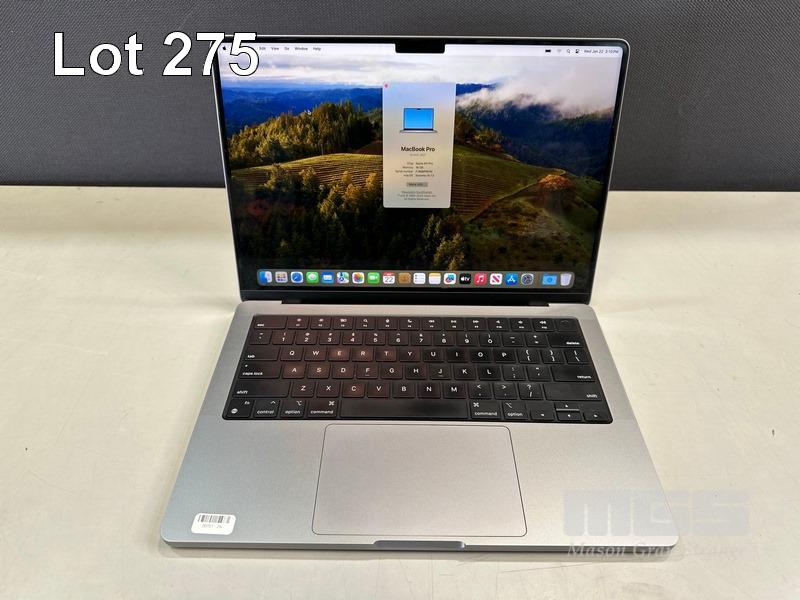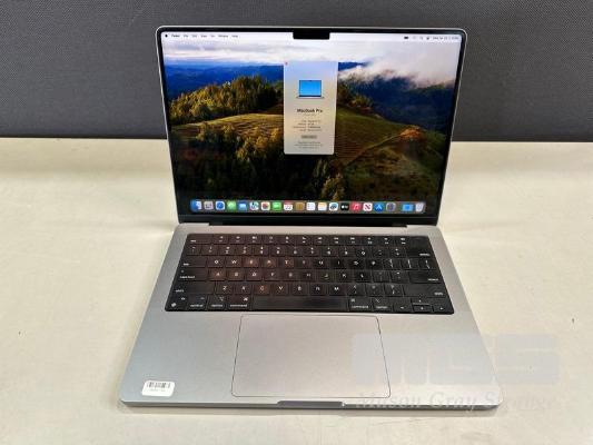LAPTOP, APPLE MACBOOK PRO, MKGP3X/A (SPACE GREY), APPLE M1 PRO 8 CPU, 16GB RAM, 512GB SSD, 14" LIQUID RETINA XDR DISPLAY (3024x1964), Wi-Fi, BLUETOOTH, MAC OS 14 INSTALLED (NO POWER SUPPLY) S/N:FJ0QWPMX9G
