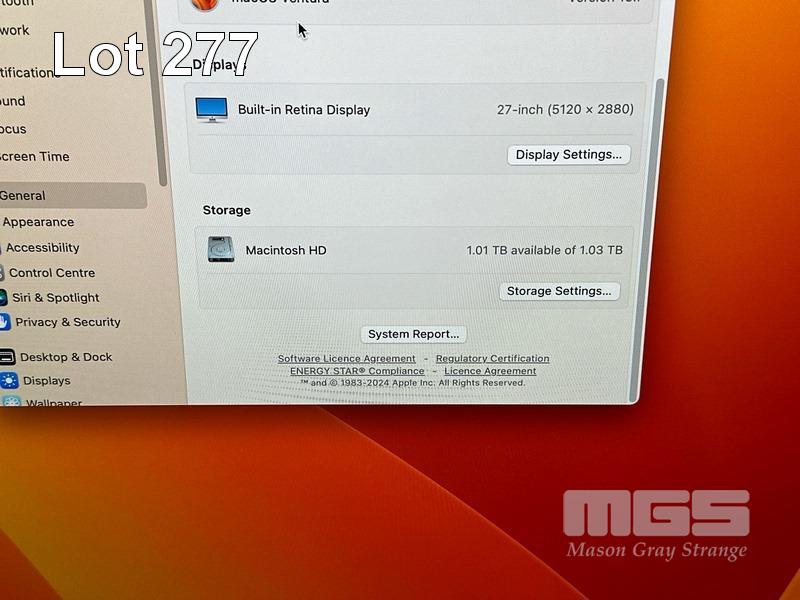 APPLE iMAC (A1419), CORE i5 7500 (7TH GEN) @ 3.4GHz, 8GB DDR4 RAM, 1TB FUSION DRIVE, BUILT-IN 27" RETINA 5K DISPLAY (5120x2880), 4GB RADEON PRO 570 VIDEO, Wi-Fi, BLUETOOTH, MAC OS 13 INSTALLED, KEYBOARD & MOUSE S/N:C02VR0LEJ1GN