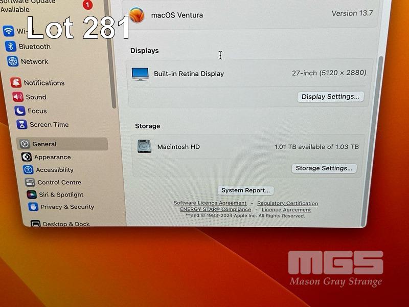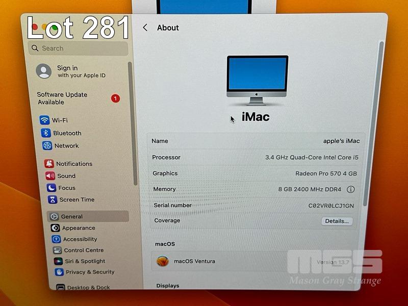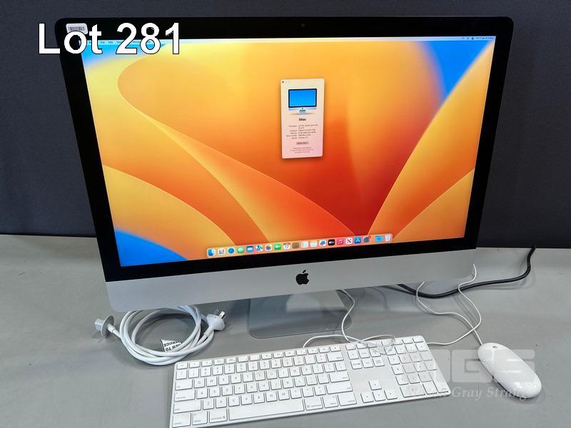 APPLE iMAC (A1419), CORE i5 7500 (7TH GEN) @ 3.4GHz, 8GB DDR4 RAM, 1TB FUSION DRIVE, BUILT-IN 27" RETINA 5K DISPLAY (5120x2880), 4GB RADEON PRO 570 VIDEO, Wi-Fi, BLUETOOTH, MAC OS 13 INSTALLED, KEYBOARD & MOUSE S/N:C02VR0LCJ1GN