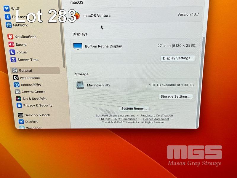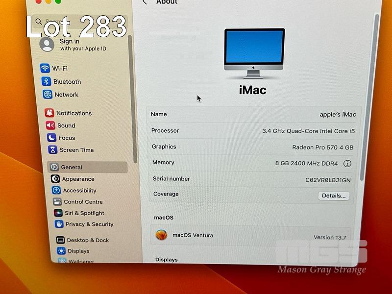 APPLE iMAC (A1419), CORE i5 7500 (7TH GEN) @ 3.4GHz, 8GB DDR4 RAM, 1TB FUSION DRIVE, BUILT-IN 27" RETINA 5K DISPLAY (5120x2880), 4GB RADEON PRO 570 VIDEO, Wi-Fi, BLUETOOTH, MAC OS 13 INSTALLED, KEYBOARD & MOUSE S/N:C02VR0LBJ1GN